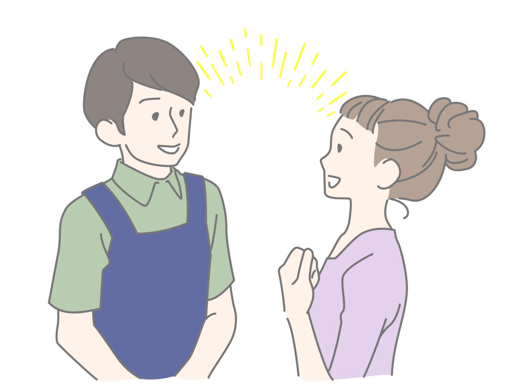 「不客气」は日本語の会話と同様に「ありがとう!」に対する返事として使うのが一般的。コミュニケーションでのイメージは以下の通りです。